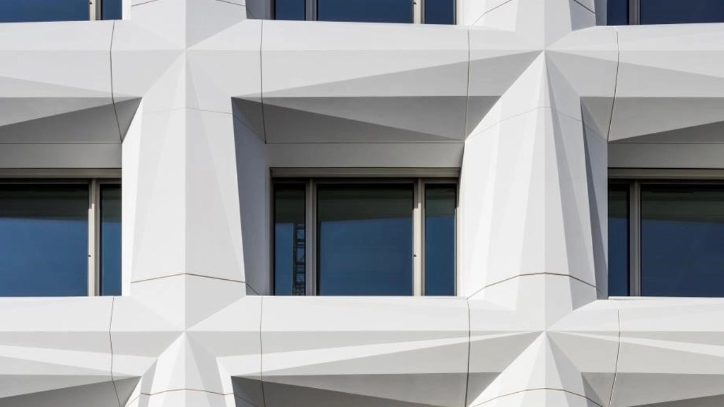 The exterior cladding was developed using Corian® Exteriors customized panels based on Corian® Solid Surface in Glacier White color because of its aesthetic properties, design versatility, durability and cleanability. The proportions reflect the balance of an urban layout and give the building a look of solid mineral, vibrating with light. It is the first façade of its kind ever made in France.