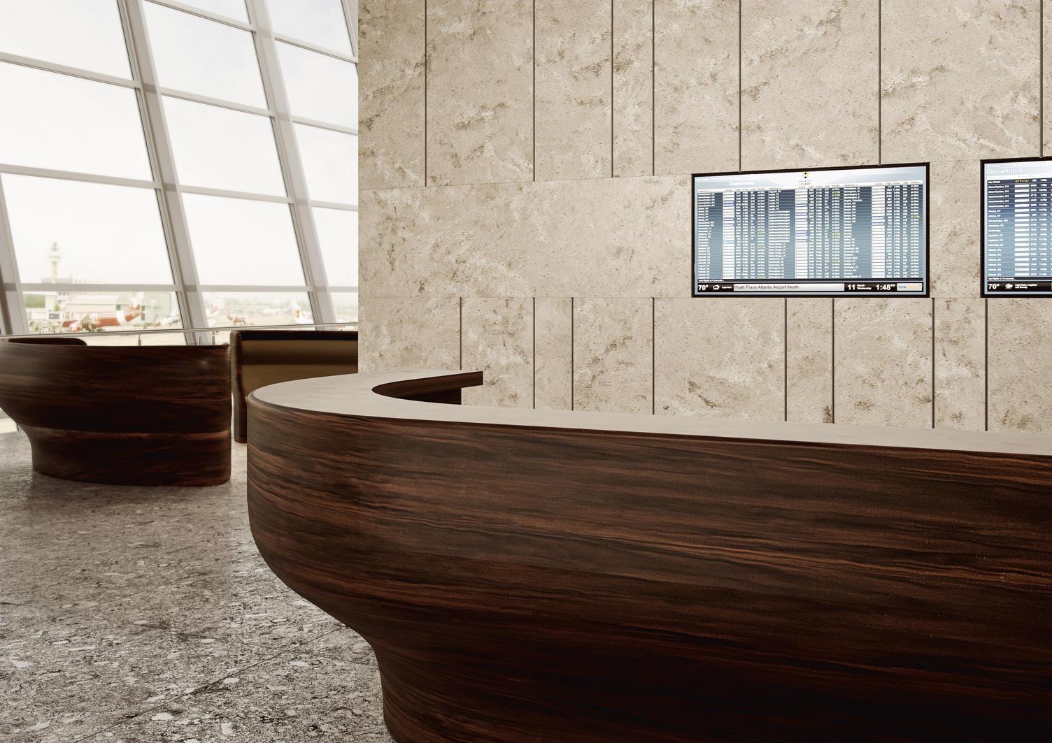 - New Colors — A large format preview of the largest aesthetic introduction of Corian® Solid Surface offerings. Five new collections (Aggregate, Terrazzo, Linear, Nuwood and Onyx) present customers with 15 enticing, new solid surface colors.